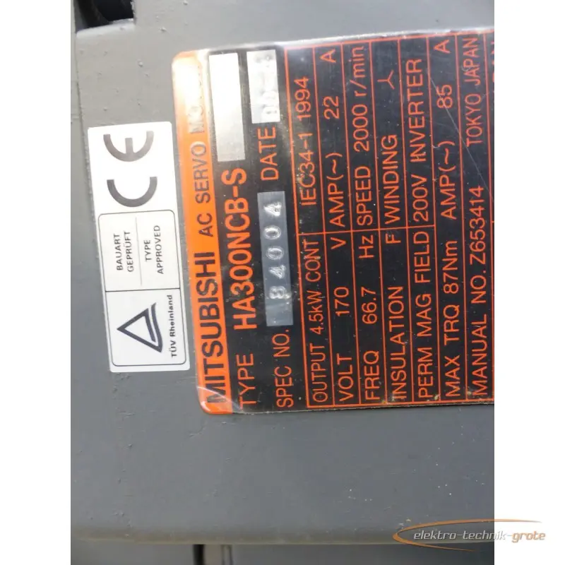 | النوع | Mitsubishi HA300NCB-S SPEC NO 84004 + Encoder OSA104 SN J4AVP4034B4 ungebr. |