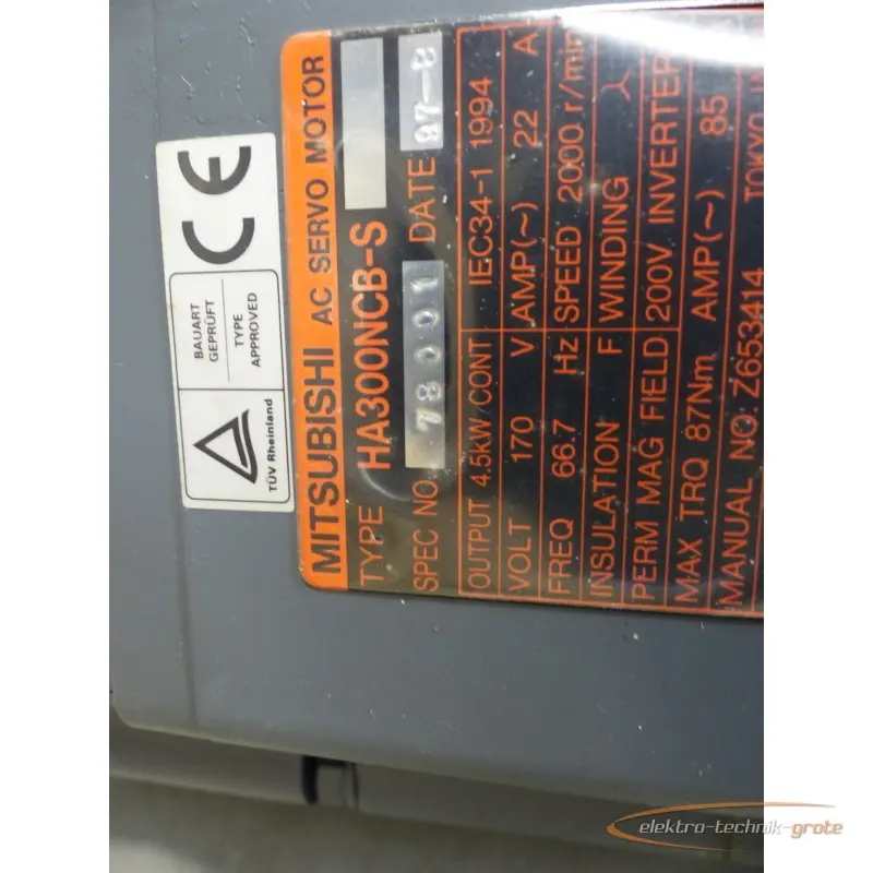 | النوع | Mitsubishi HA300NCB-S SPECK NO 78001 + Encoder OSA104 SN J4AVP3X7234 ungebr. |