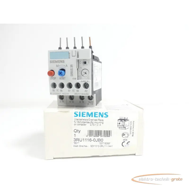 | نوع: | Siemens 3RU1116-0JB0 Überlastrelais 0,70-1,0 A E-Stand 01 00715069 ungebraucht |