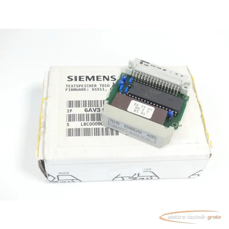 | النوع | Siemens 6AV3971-1BA03-0CA0 Textspeicher TD10 256kByte Version A00/1 ungebraucht |