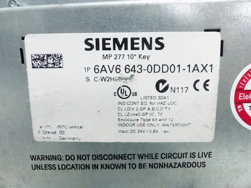 Siemens 6AV6 643-0DD01-1AX1 6AV6643-0DD01-1AX1 MP277 10 Key E-St. 02 TESTED