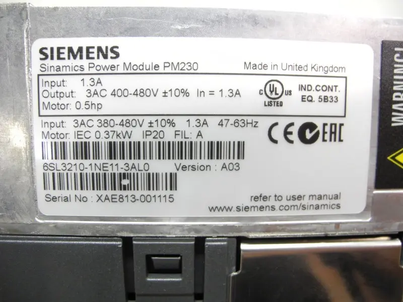وحدة Siemens 6SL3210-1NE11-3AL0 Sinamics Power Module PM230 0,37kW 400V Unbenutzt OVP