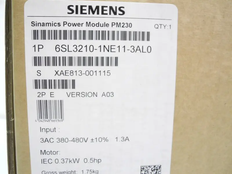 Siemens 6SL3210-1NE11-3AL0 Sinamics Power Module PM230 0,37kW 400V Unbenutzt OVP