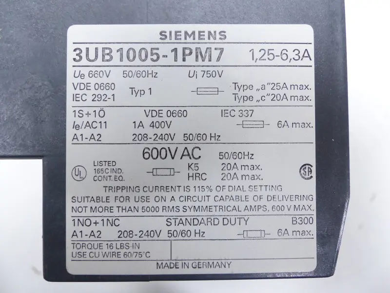 محول-التردد Siemens Elekton. Überlastrelais 3UB1005-1PM7 1,25-6,3A 600V AC unbenutzt OVP