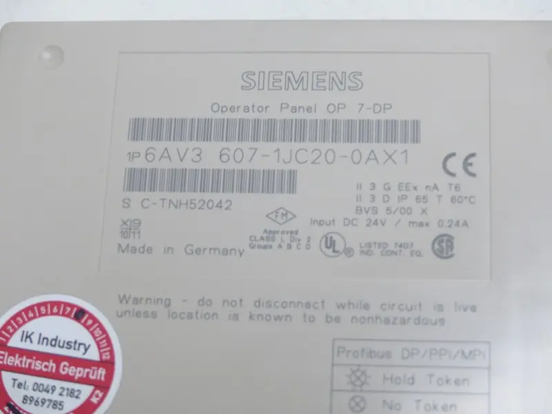 Siemens Panel OP7-DP 6AV3 607-1JC20-0AX1 6AV3607-1JC20-0AX1 E-St.8 NEUWERTIG