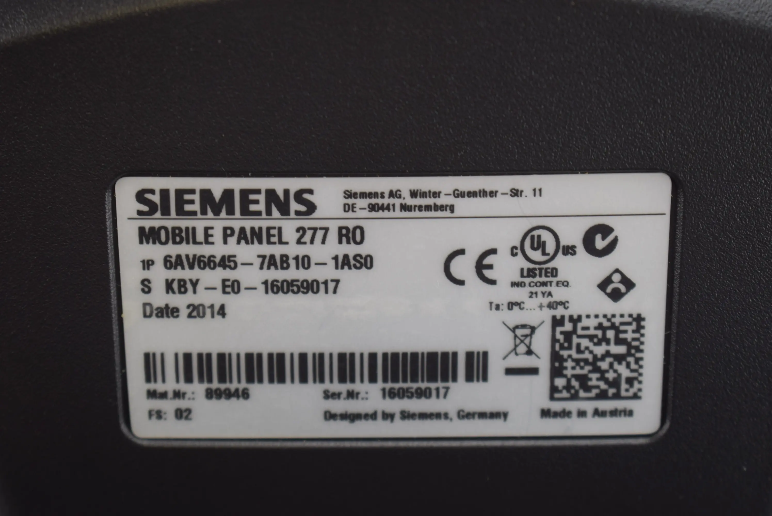 Siemens simatic Mobile Panel 277 6AV6645-7AB10-1AS0 ( 6AV6 645-7AB10-1AS0 ) E2
