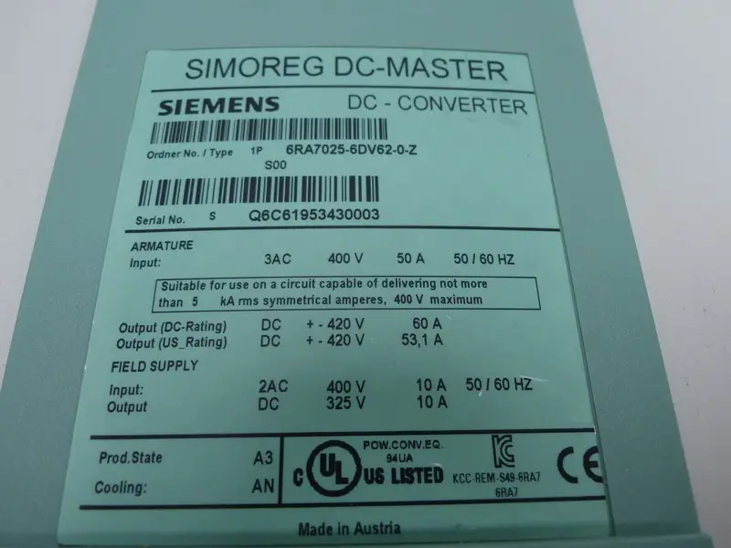 Siemens Simoreg 6RA7025-6DV62-0-Z DC-Converter + CUD1 Profibus Karte TOP ZUSTAND