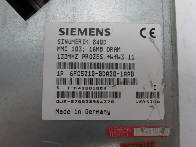 Siemens Siemens Sinumerik 840D 6FC5210-0DA20-1AA0 MMC 103 16MB DRAM 133MHZ Version C
