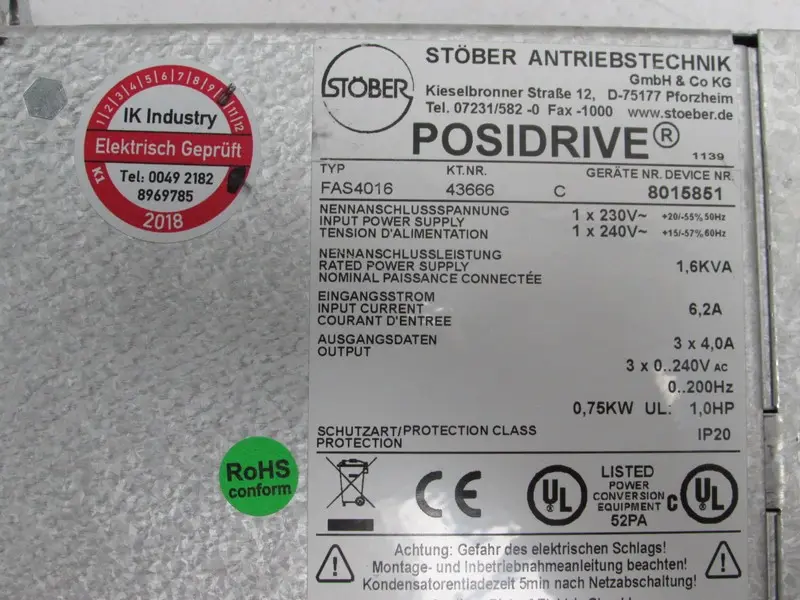 Stöber Posidrive FAS 4000 FAS4016 240V 1,6KVA 4,0A 0,75kW Tested Top Zustand