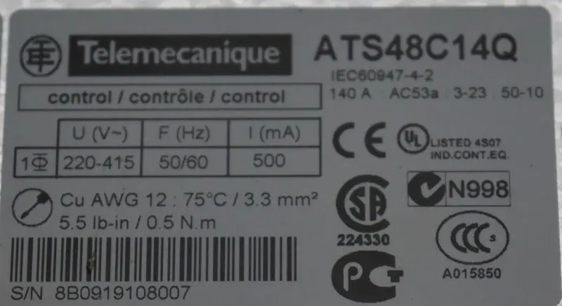 محول-التردد Telemecanique Altistart 48 ATS48C14Q 400V 50/60Hz 140A TESTED TOP ZUSTAND