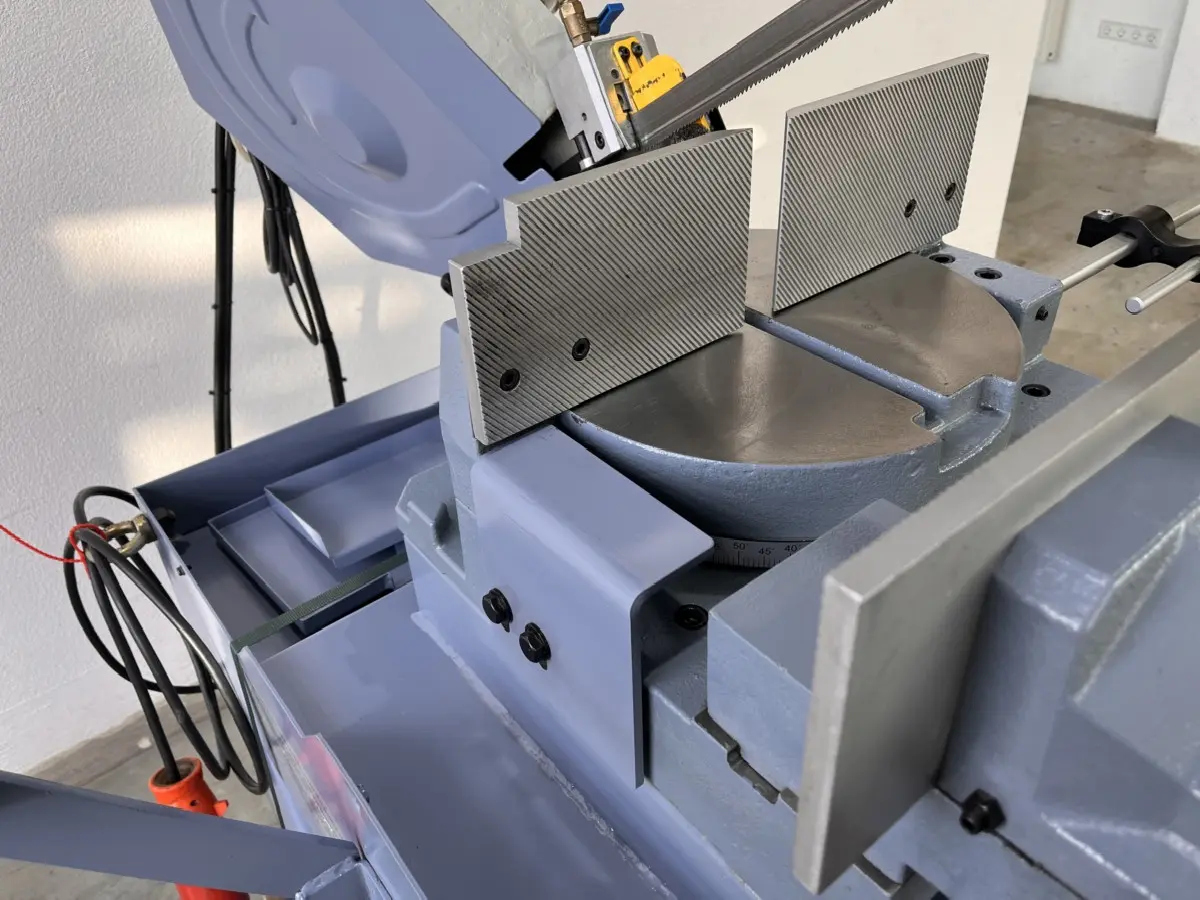 Die Doppelgehrungsbandsäge MBS 315 DG-VR PRO hat den Vorteil, dass sich der