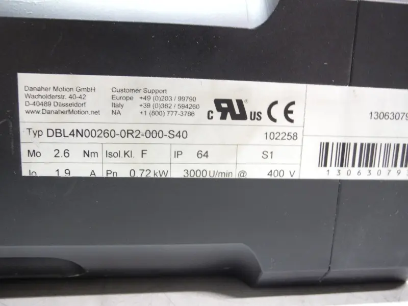 Danaher Motion DBL4N00260-0R2-000-S40 Servomotor max. 3000 0,72kW neuwertig