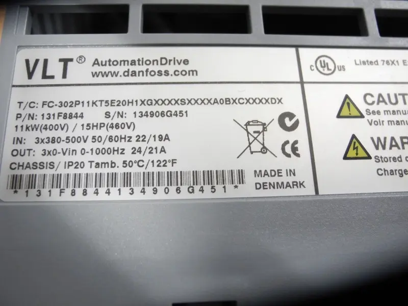 Danfoss VLT FC-302 131F8844 FC-302P11KT5E20H1XGX 400V 21A 11kw Neuwertig