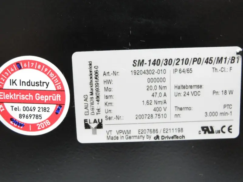Elau Servomotor SM-140/30/210/P0/45/M1/B1 20,0Nm 3.000min-1 Top Zustand TESTED