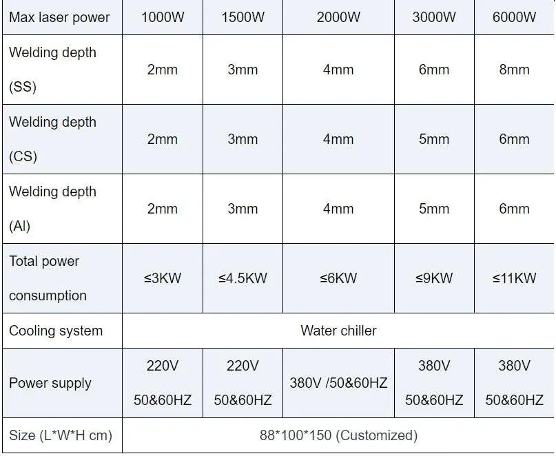 Мощность сварки1000W 1500W 2000W 3000W 6000W