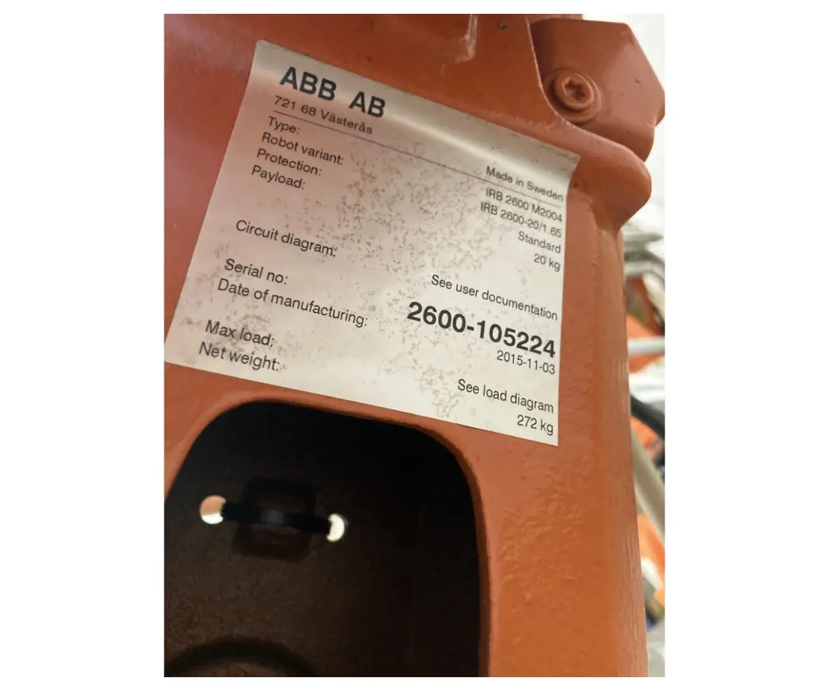 | Модель/Тип: | IRB 2600-20/1.65 (sn: 2600-105224) |