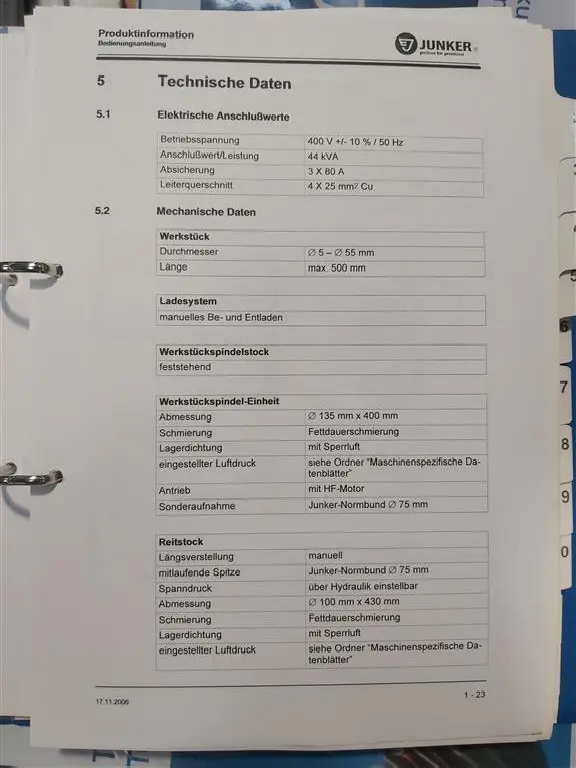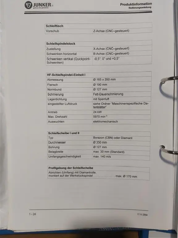 | Мощность привода | : 7 kW Antrieb X /Z-Achse: Kugelgewindetrieb Verfahrgeschwindigkeit: 0,01 - 10.000 mm/min. Auflösung: 1 µm Rundlauf Werkstückspindel: < 1 µm |