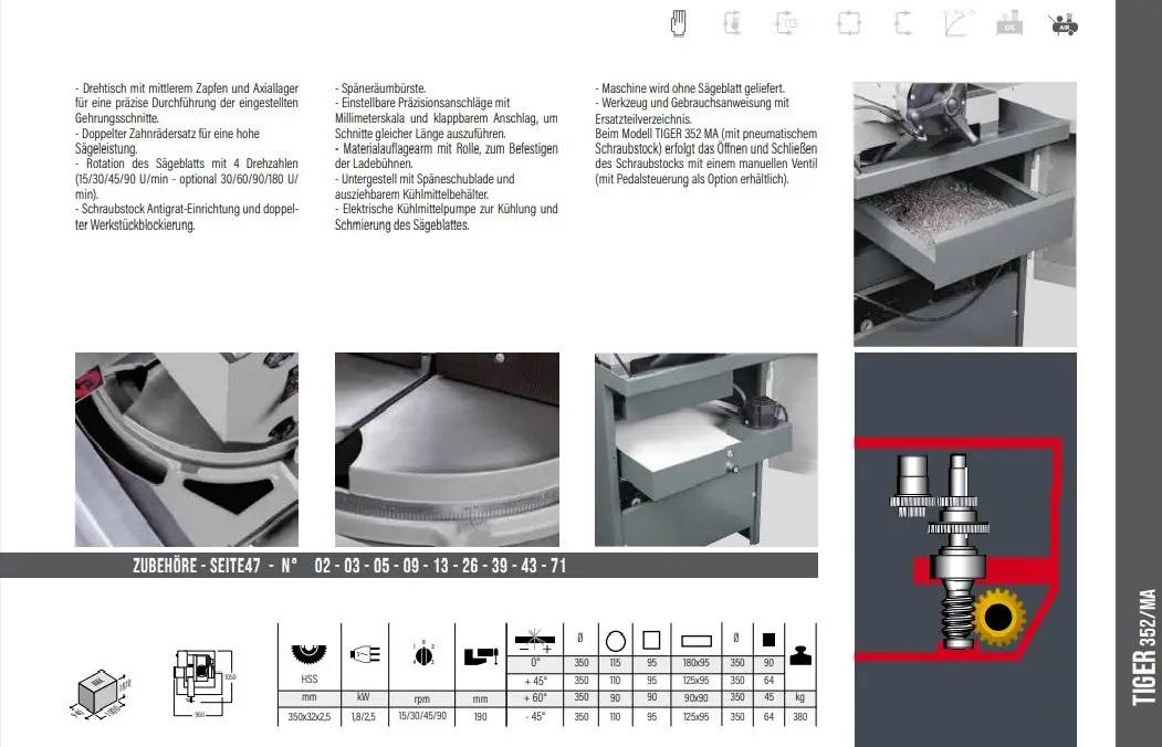 Präzisionsanschlägen bei 0/45/60° sorgt für eine schnelle Verstellbarkeit