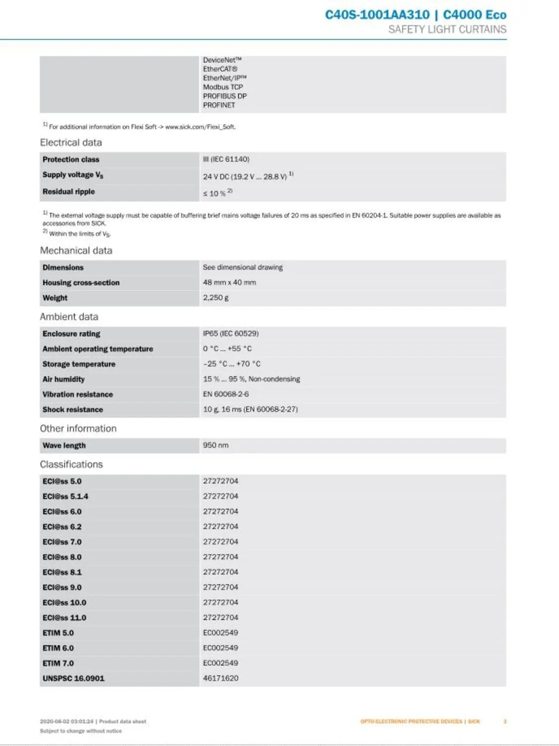 Pos. 1: 1x Safety light curtain C4000 Eco Sender C40S-1001AA310 1027450 Pos. 2: 1x Safety light curtain C4000 Eco Receiver C40E-1001BN31 1027491