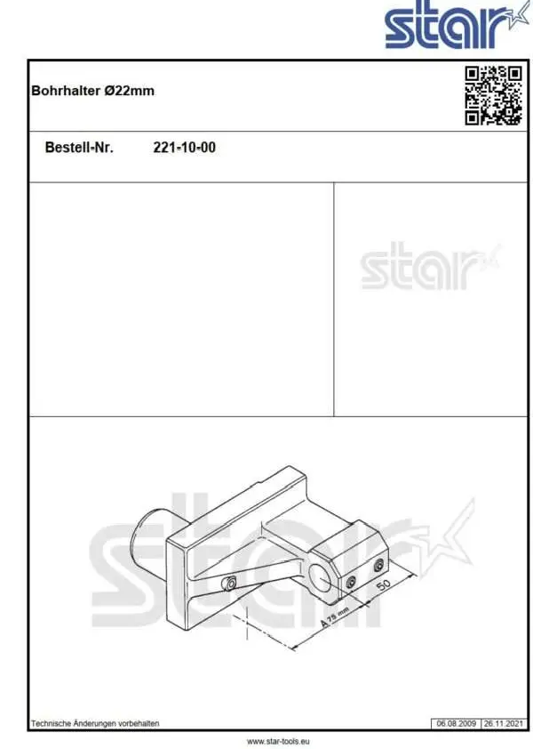 1-fach Bohrhalter Ø22mm Schaft