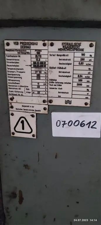 | Производитель: | VEB PRESSENBAU DESSAU |